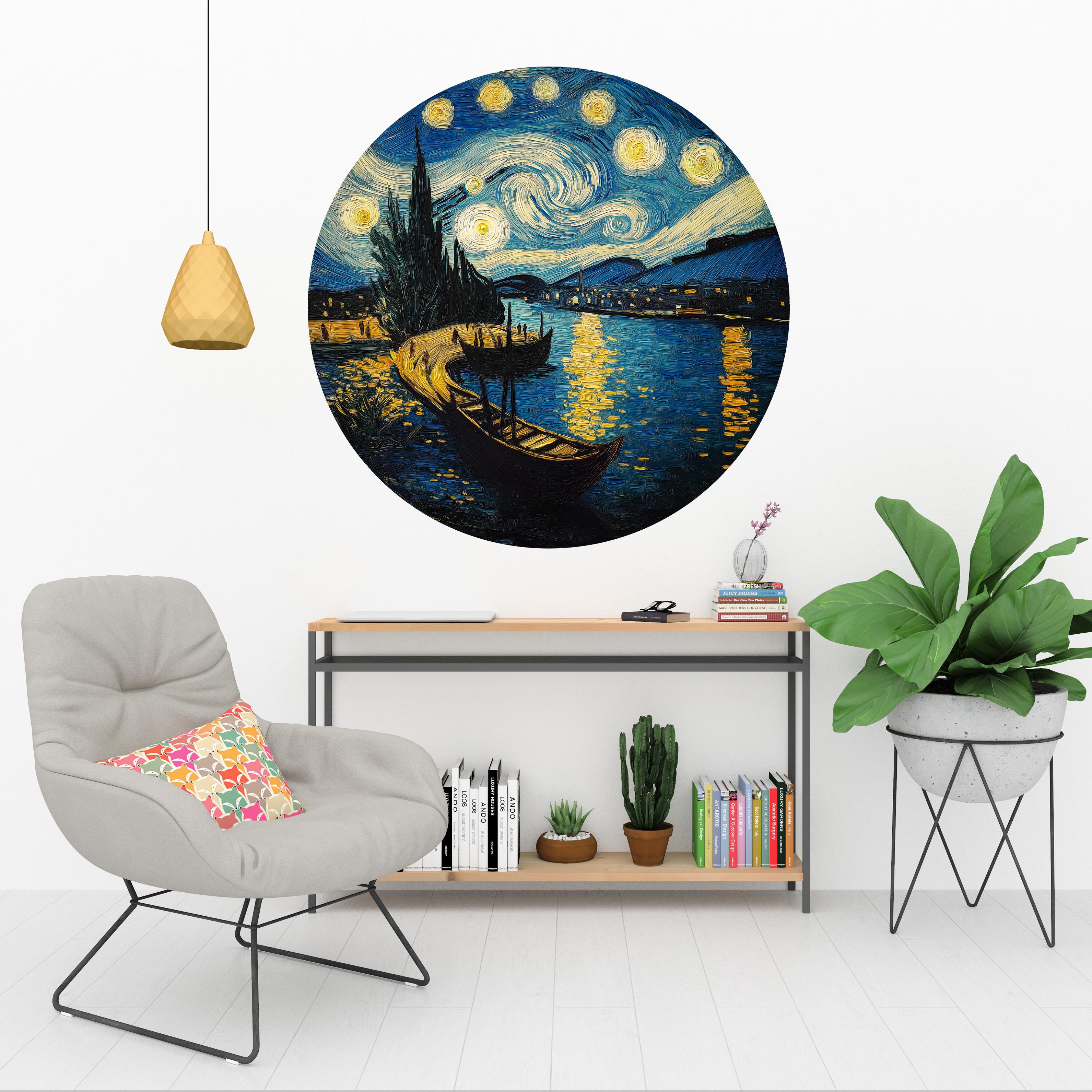 Van Gogh Tarzı Manzara Yuvarlak Sticker, Yuvarlak Şekilli Sticker, Yıldızlı Gece Duvar Dekoru