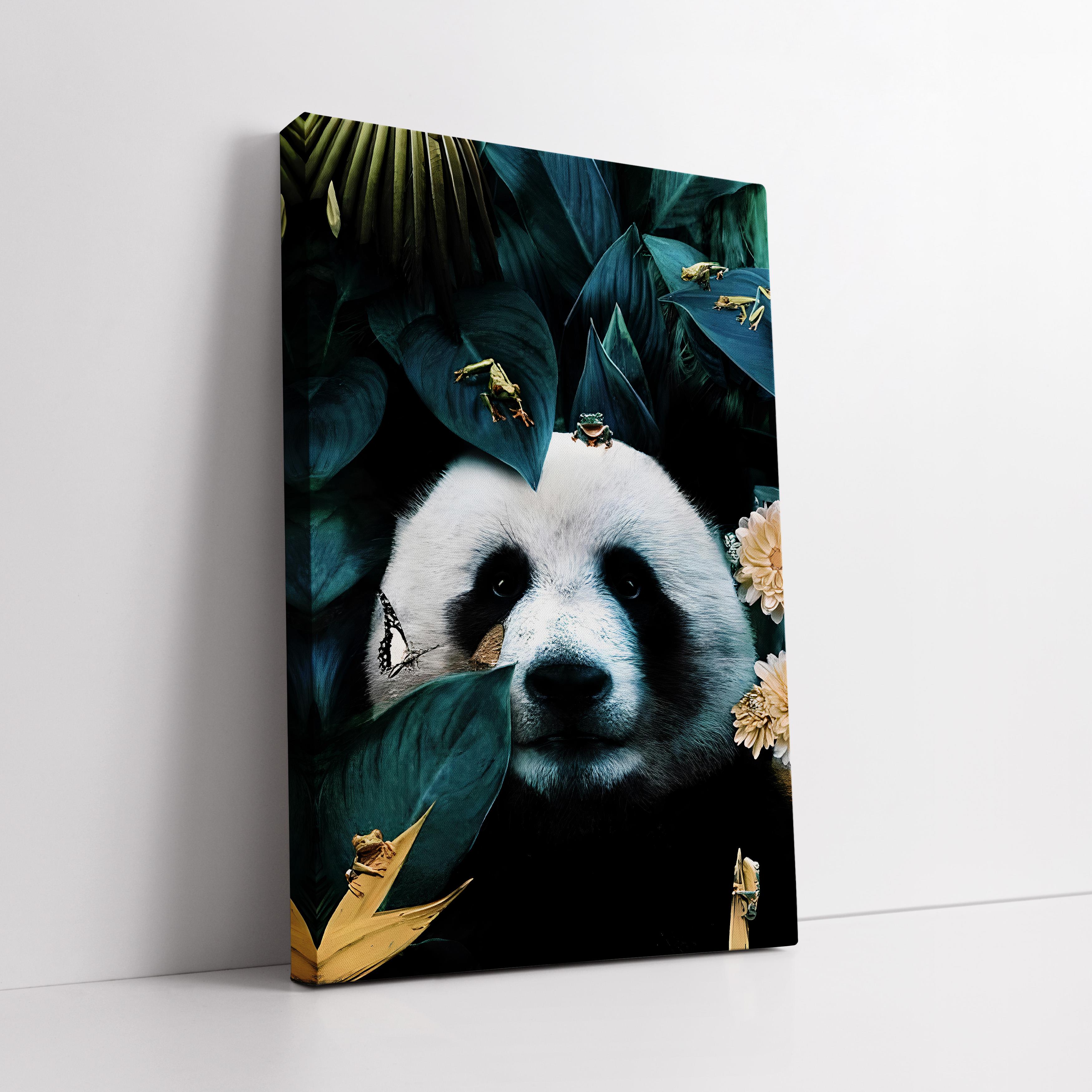 Yapraklar Arasında Sevimli Panda Kanvas Tablo (KSS-D-81)